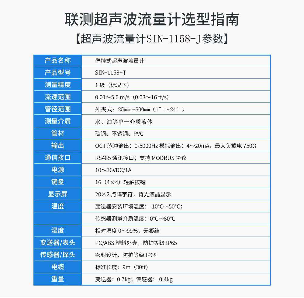 聯測SIN-1158-J壁掛式超聲波流量計