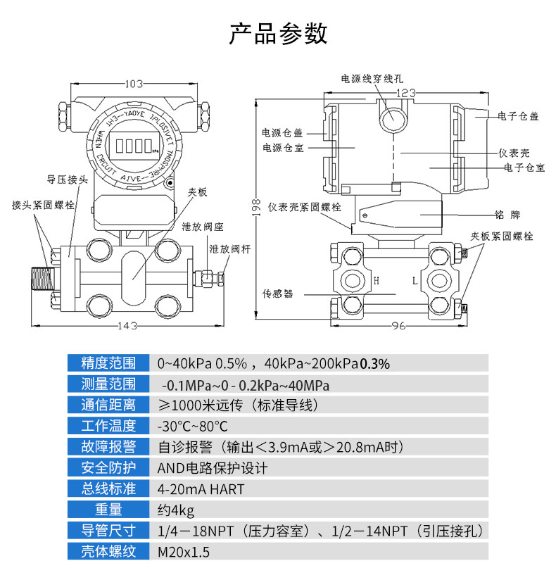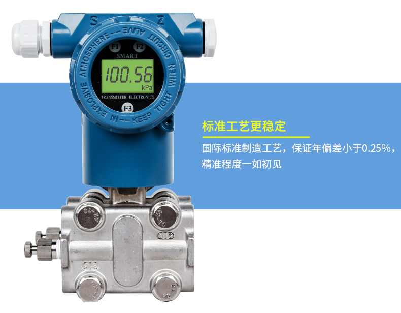 SIN-3051系列壓力變送器利用差動電容檢測的原理,當膜片兩側壓力不一致時,使容室中測量膜片產生位移,其位移量與壓力差成正比,通過電路處理將電容變化量轉換成4~20mA的二線制電流或電壓信號,可帶上458協議或者HART通訊協議功能。該變送器具有堅固抗振,量程,零點和阻尼現場連續可調。