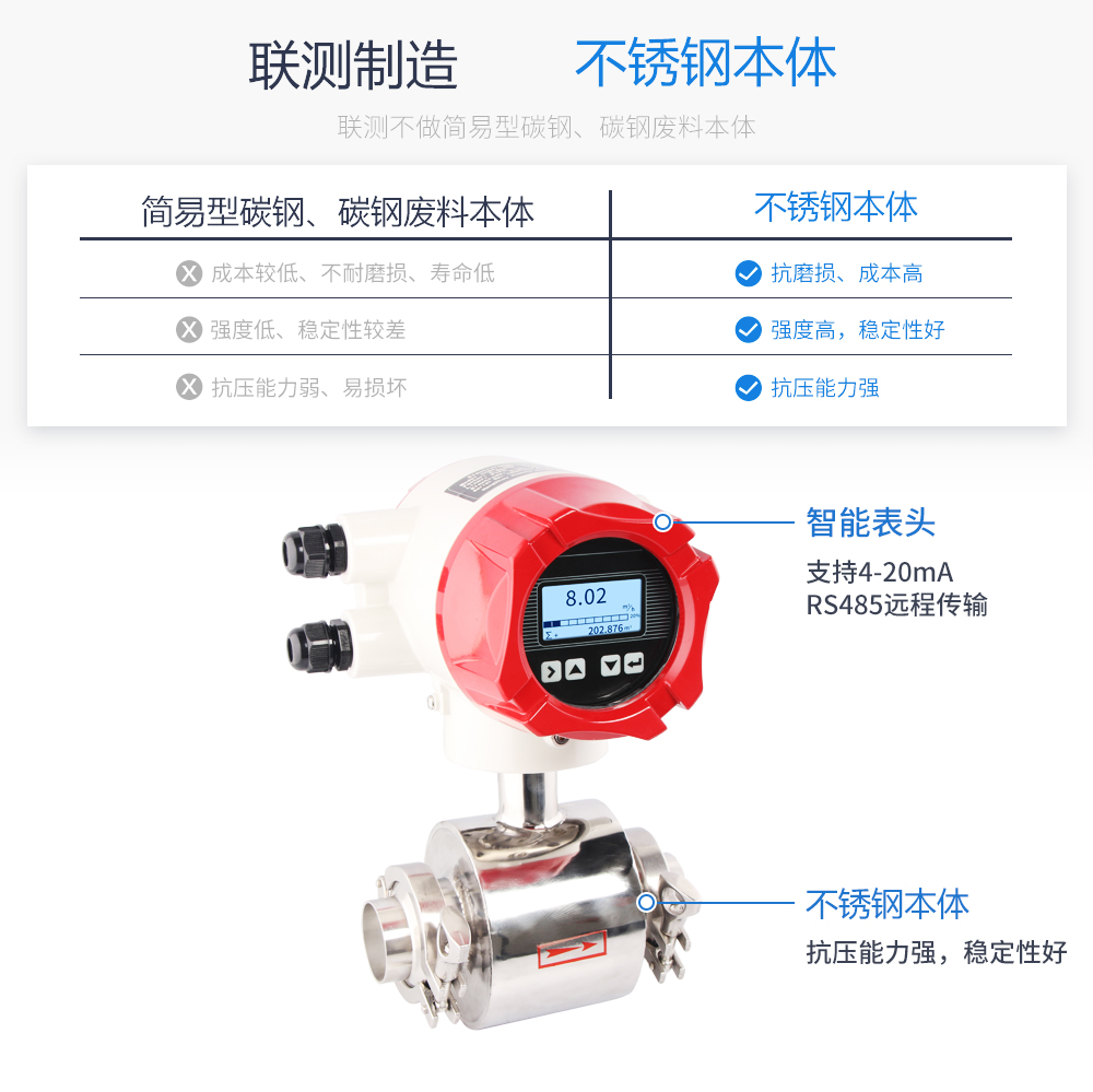 聯測LDG-SINW衛生型電磁流量計廣泛應用于食品,醫藥等衛生型行業及溫泉、飲料等領域的流量計量。多用于現場工況或者介質要求衛生類型。