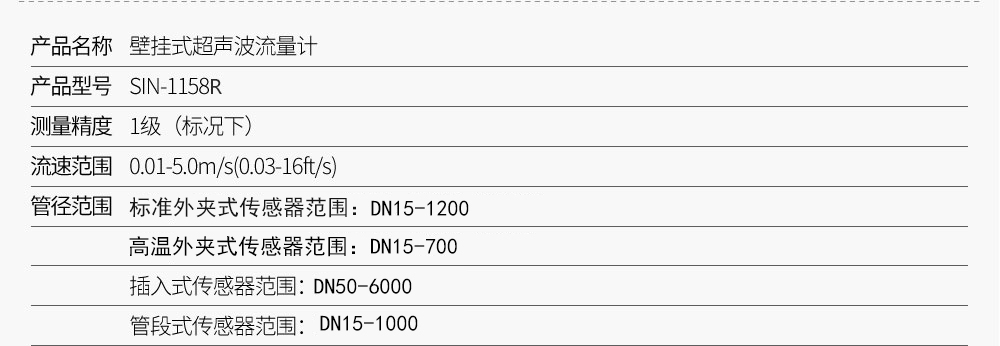 聯測儀表SIN-1158R外夾壁掛式超聲波流量計主要是對熱交換系統中載能介質(液體水)的供水溫度、回水溫度及瞬時流量進行實時測量,并按照熱力學能量計算公式,對系統消耗的冷量或熱量值進行計算并保存的裝置,聯測超聲波(冷)熱量表適用于空調回水、樓宇能源管理以及供暖等行業,超聲波原理讓其安裝更為方便。