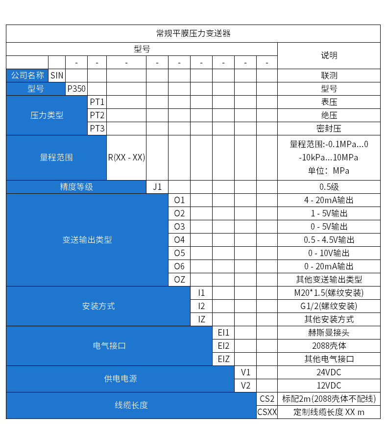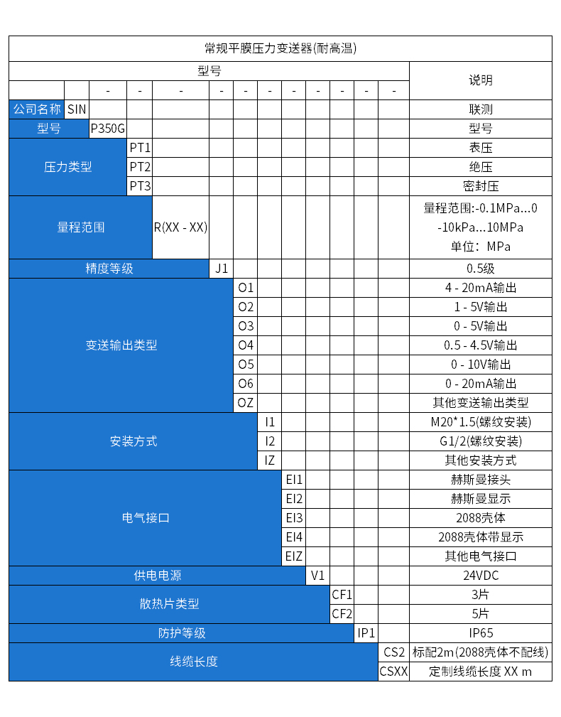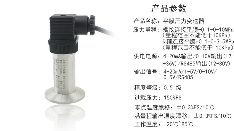 SIN-P350系列平面膜結構壓力變送器采用平面膜直接感受壓力。傳感器接口有卡箍式,M27×2,法蘭式可供選擇。輸出信號有電壓、電流、頻率信號等可選擇,傳感器平膜片防止了結垢,不衛(wèi)生及粘稠液體堵塞等問題。廣泛應用于食品、醫(yī)藥、衛(wèi)生及釀酒工業(yè)等部門。