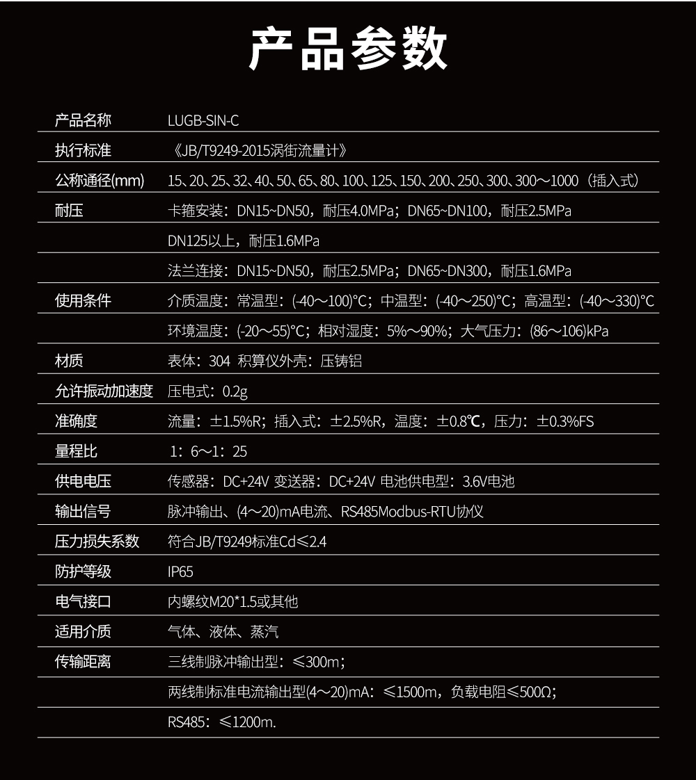 LUGB型渦街流量計是速度式流量計的一種,基于卡門(Karman)旋渦原理研究設計的,主要用于工業管道中介質流體的流量測量,如:氣體、蒸汽或液體等多種介質的流量控制和計量。
