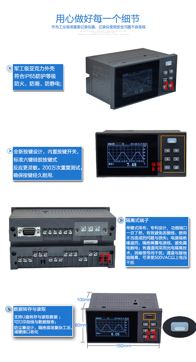 SIN-R200D系列無紙記錄儀是一種高速高性能微處理器和3英寸單色液晶顯示分辨率320*200,對現場各種溫度、壓力、流量、電量等信號實現監測、控制和記錄功能。